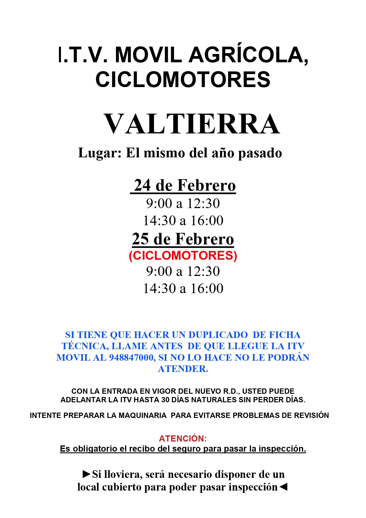 La ITV móvil agrícola se desplazará a Valtierra en las siguientes fechas: