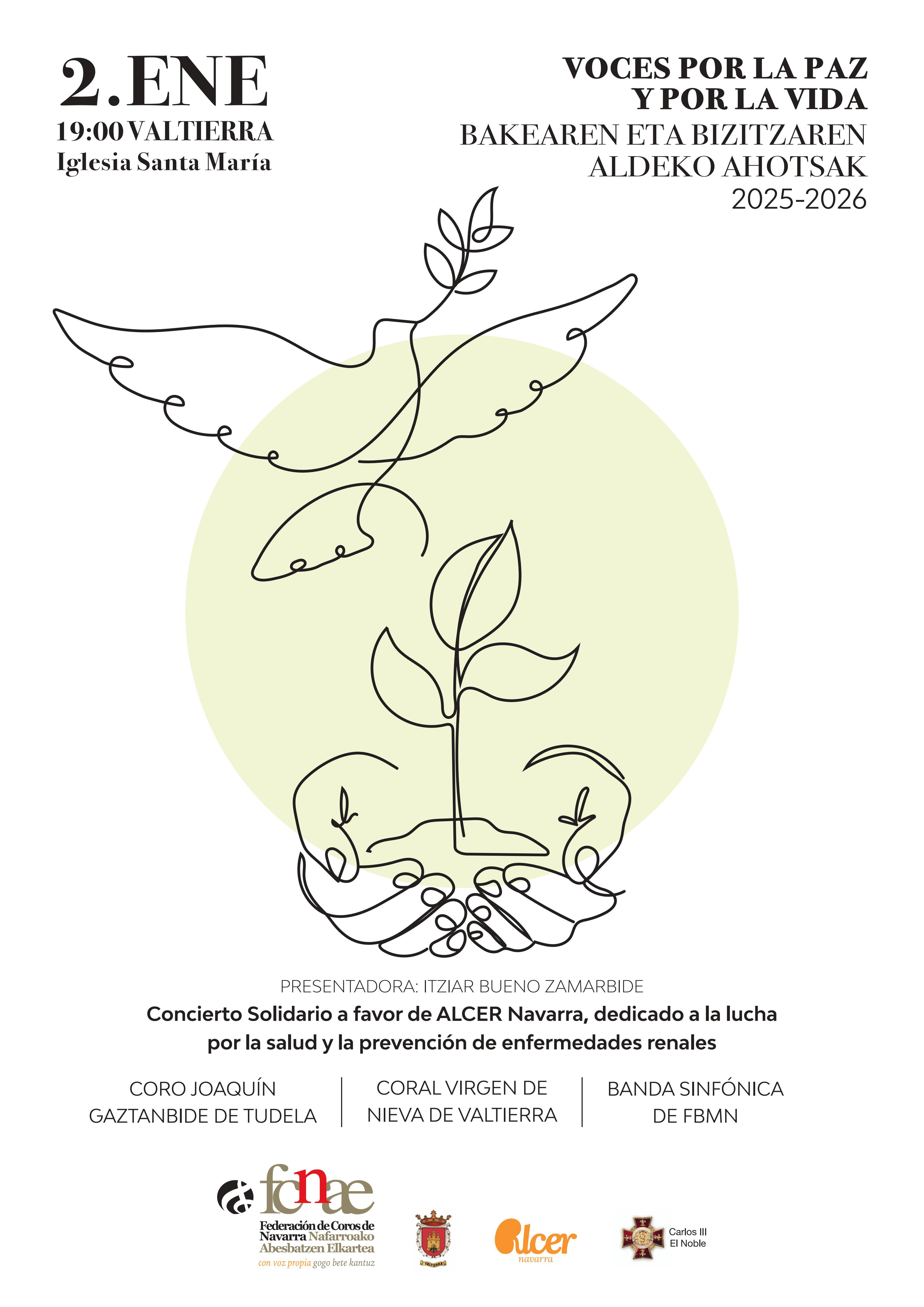 Voces por la paz y por la vida. Concierto solidario a favor de ALCER Navarra, dedicado a la lucha por la salud y la prevención de enfermedades renales.