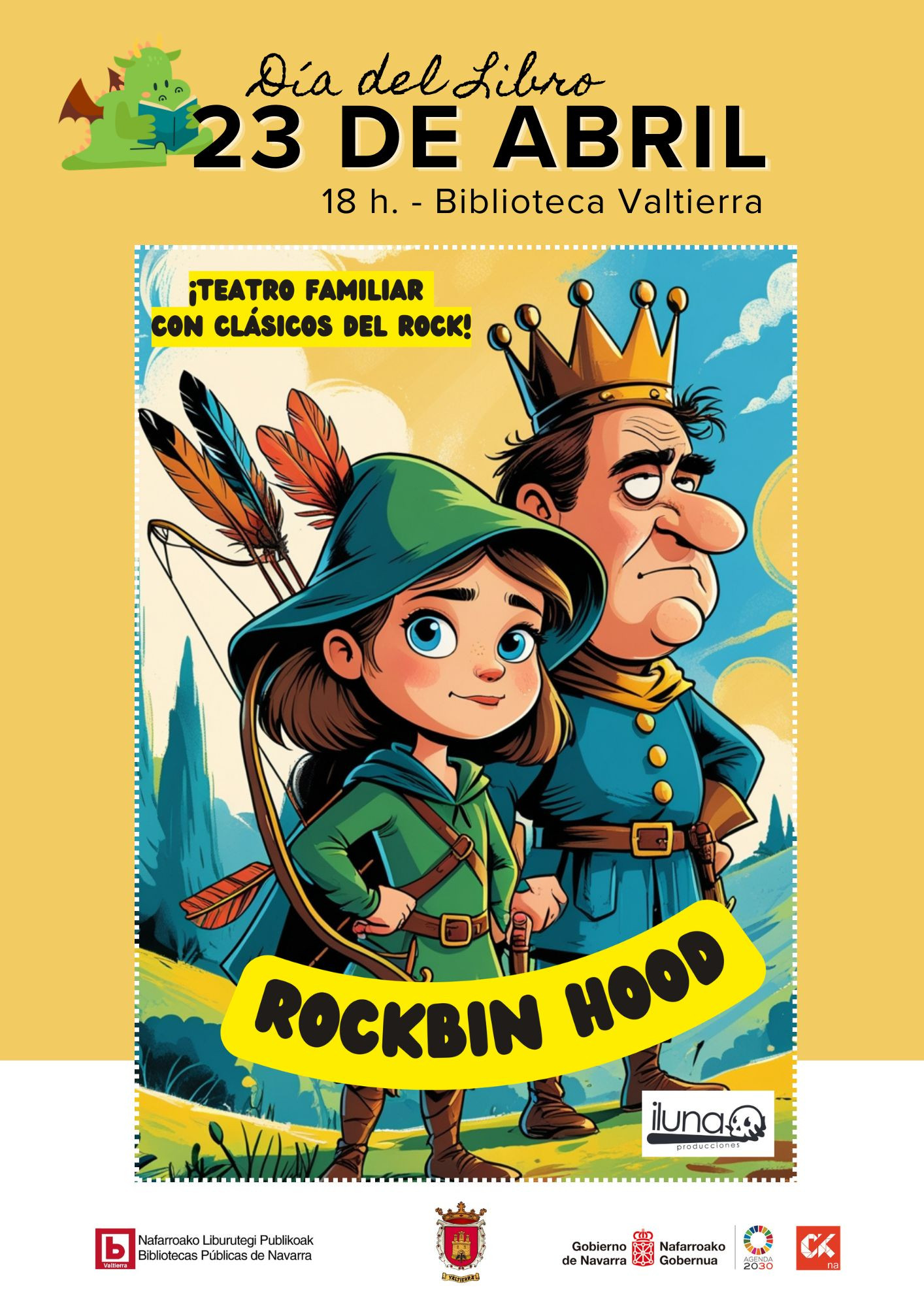 Vamos a tener teatro+ rock+ humor en el espectáculo 'Rockbin Hood', una versión gamberra y súper divertida del clásico Robin Hood de Iluna Producciones, en la que saldrán a escena canciones de Led Zeppelin, AC/DC, Deep Purple o Bruce Springsteen, además de valores como el feminismo, el compañerismo y la solidaridad.